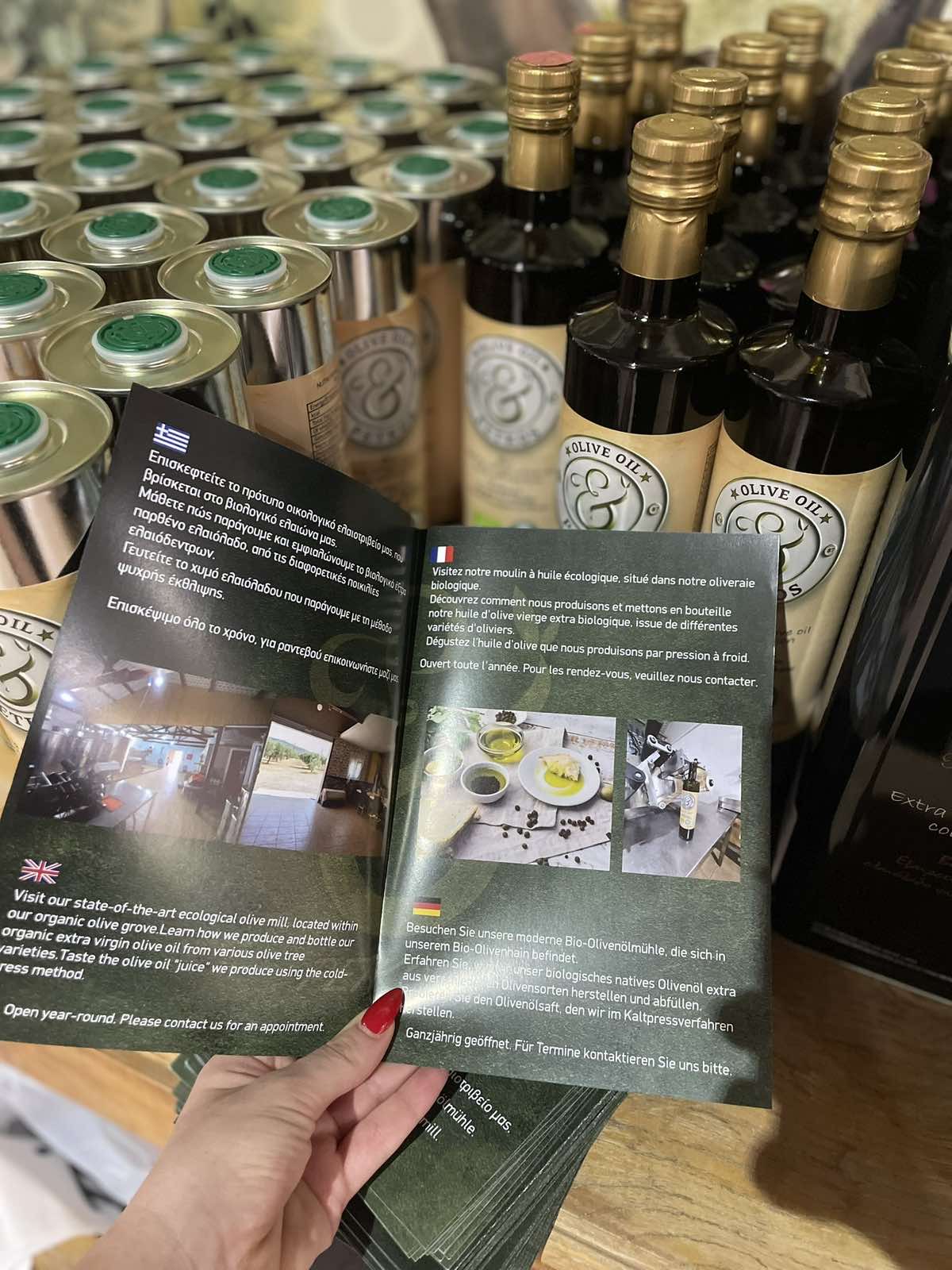Ο καρπός της ελιάς ωριμάζει μεταξύ Σεπτεμβρίου και Οκτωβρίου και συλλέγεται με τα χέρια από τα δέντρα. Επειδή όμως οι ελιές συλλέγονται μία προς μία, το προσωπικό που τις συλλέγει οφείλει να τις προστατευει απο τα χτυπηματα,με στοχο να στασει αλωβητη και ολοκληρωμενη στο τραπέζι του καταναλωτή.Στο τέλος κάθε ημέρας, ο καρπός μεταφέρεται στο ελαιοτριβείο και την ίδια μέρα ξεκινάει η διαδικασία παραγωγής του λαδιού. Στη συνέχεια το ελαιόλαδο που παράγεται, φιλτράρετε με έναν ιδιαίτερο τρόπο χωρίς τη χρήση χημικών, εξασφαλίζοντας έτσι άριστη ποιότητα στο προϊόνΓια το πότισμα των δέντρων, κυρίως τους καλοκαιρινούς μήνες, χρησιμοποιούμε ένα αρδευτικό σύστημα ειδικά κατασκευασμένο για τις ανάγκες των ελαιώνων μας. Το σύστημα αυτό περιλαμβάνει σειρές από σωλήνες, που τοποθετούνται περιμετρικά των ριζών, και επιτρέπουν στο νερό να βγαίνει σε μορφή σταγονιδίων, ώστε να απορροφούνται άμεσα από το έδαφος.